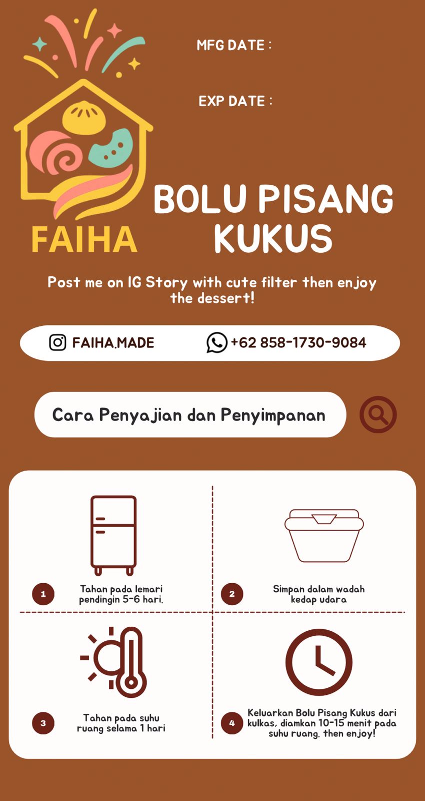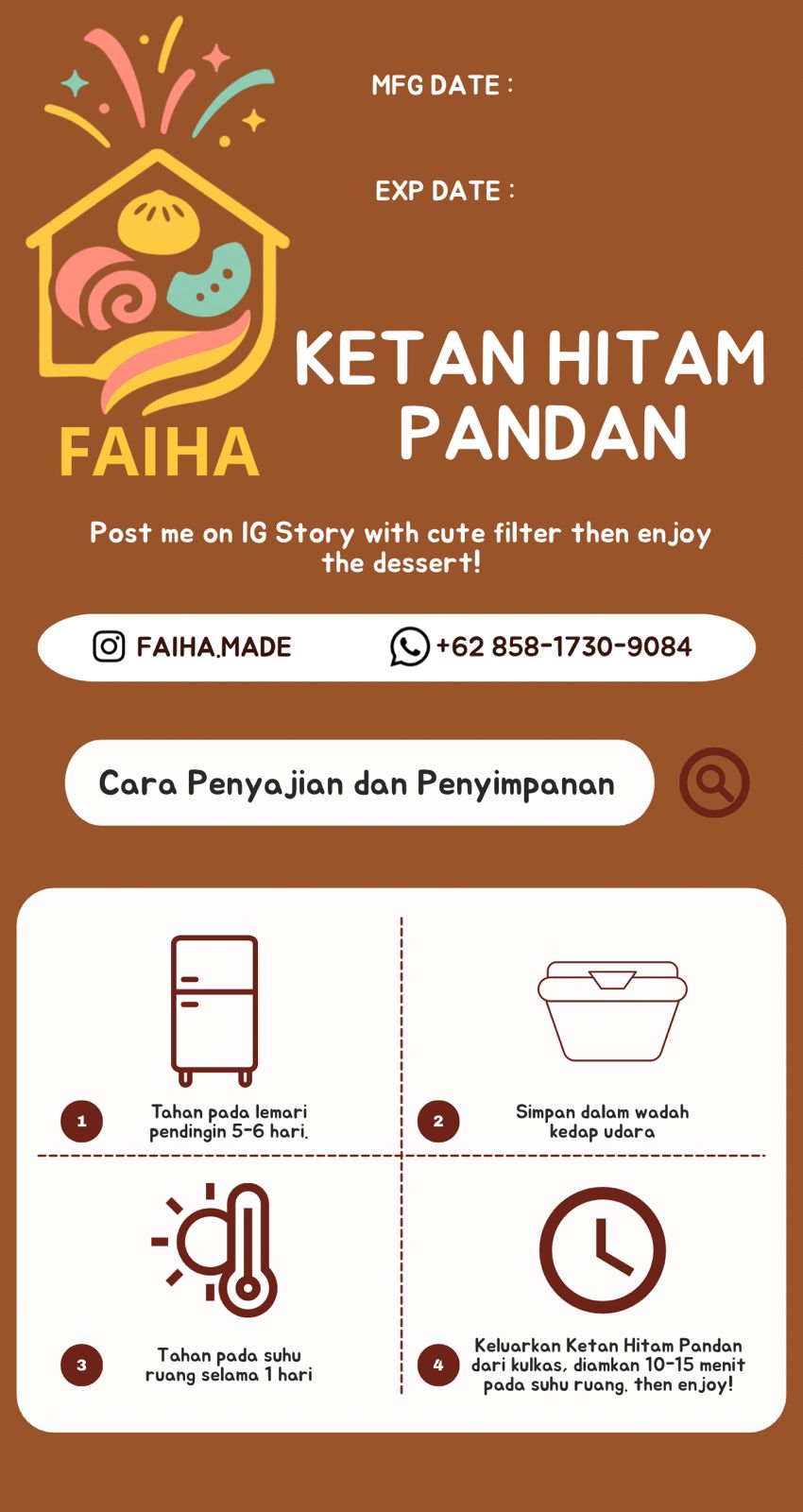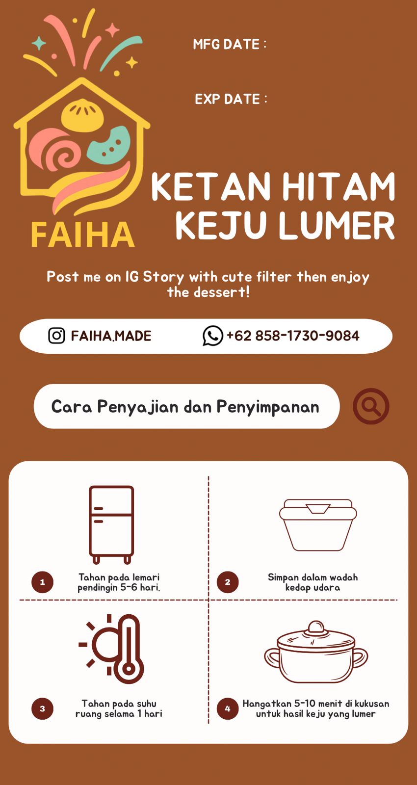 Faiha ini hidden gem! Bolu kukusnya juara semua, tapi favorit saya yang ketan hitam pandan. Harganya worth it dengan kualitas yang didapat. Customer service juga responsif.